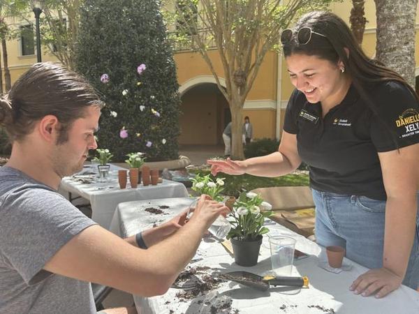 The Charge • March 26 2023 Students celebrate start of spring with Rosen Bloom Fest Students entered the Rosen Courtyard on Wednesday to the sounds of modern-pop classical covers, gardening activities and decorative flowers covering the spring-themed space.